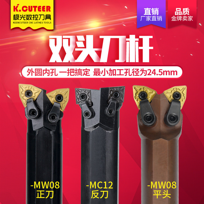 精车数控车刀杆双头刀杆外圆内孔共用一把机夹镗孔平头正反刀牛头