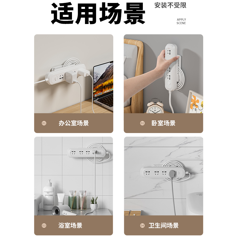 插座固定器墙上插排电线走线路由理线免打孔宿舍桌下收线绕线整理