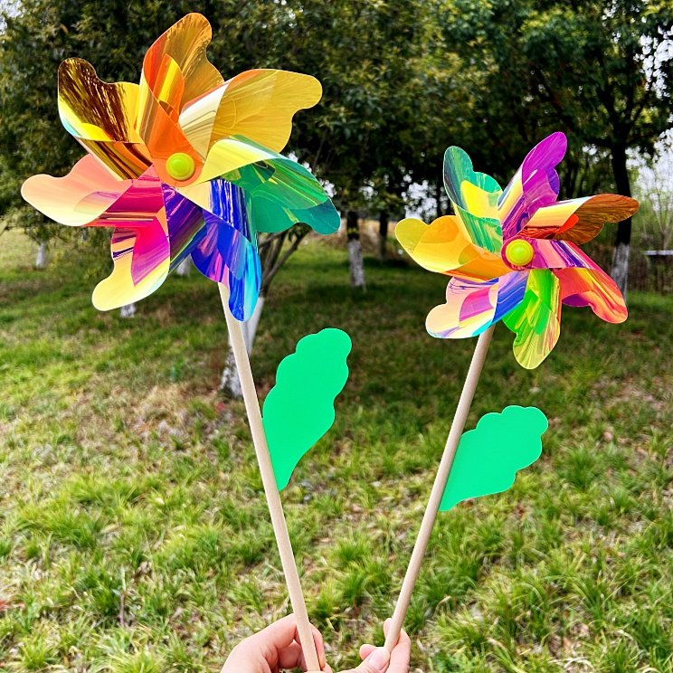 推荐理由:七彩手持木杆风车儿童旋转幼儿园景区户外玩具装饰道具彩色大风车