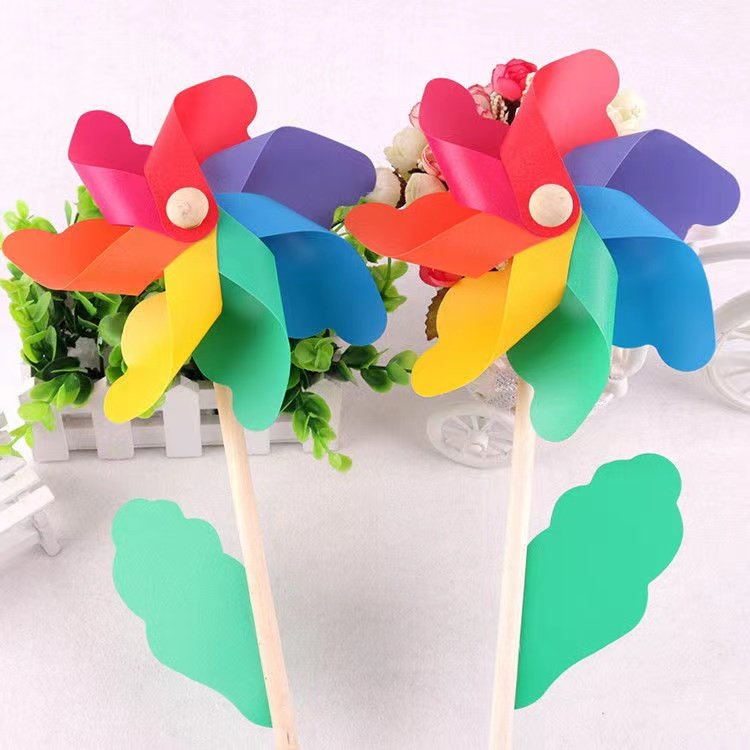 七彩手持木杆风车儿童旋转幼儿园景区户外玩具装饰道具彩色大风车