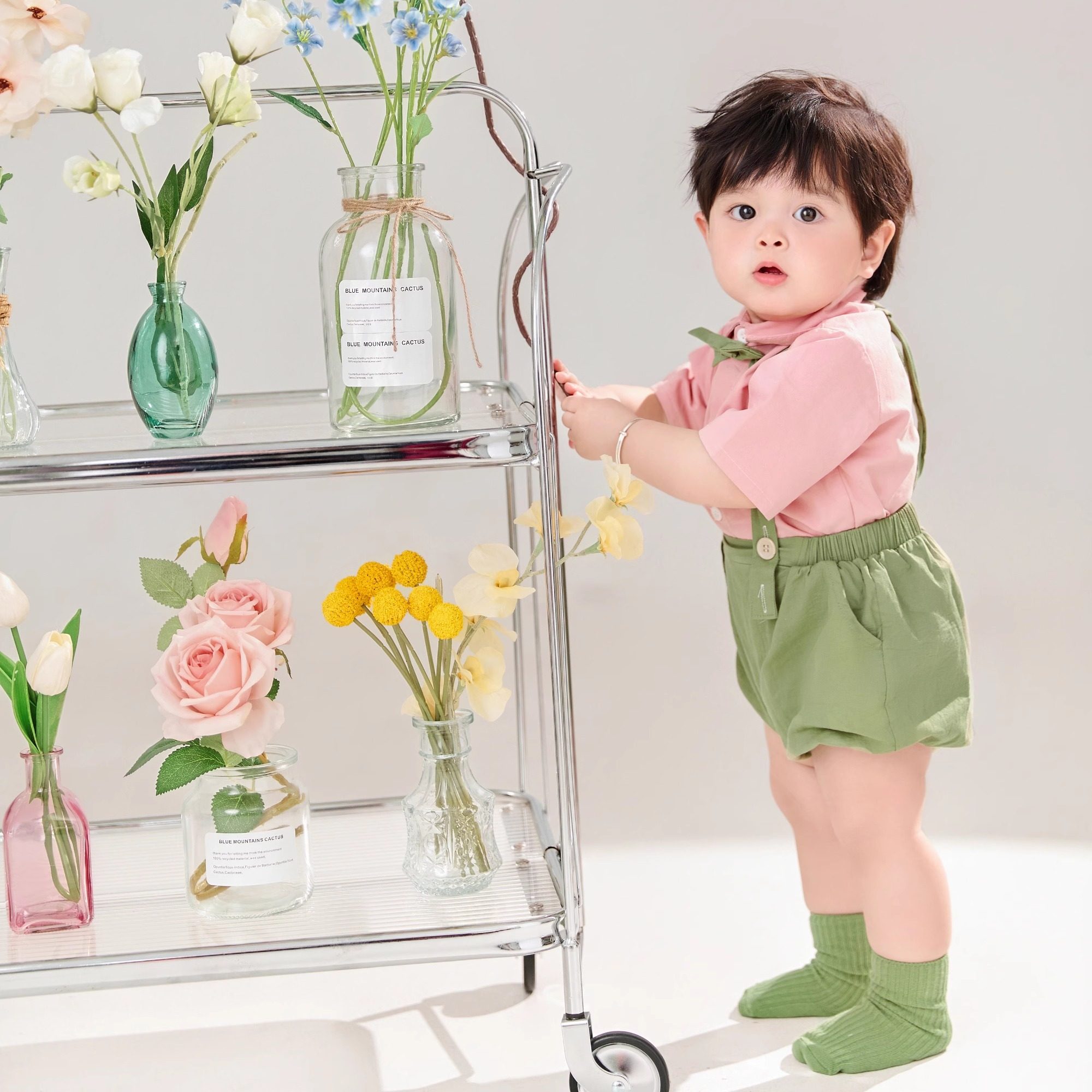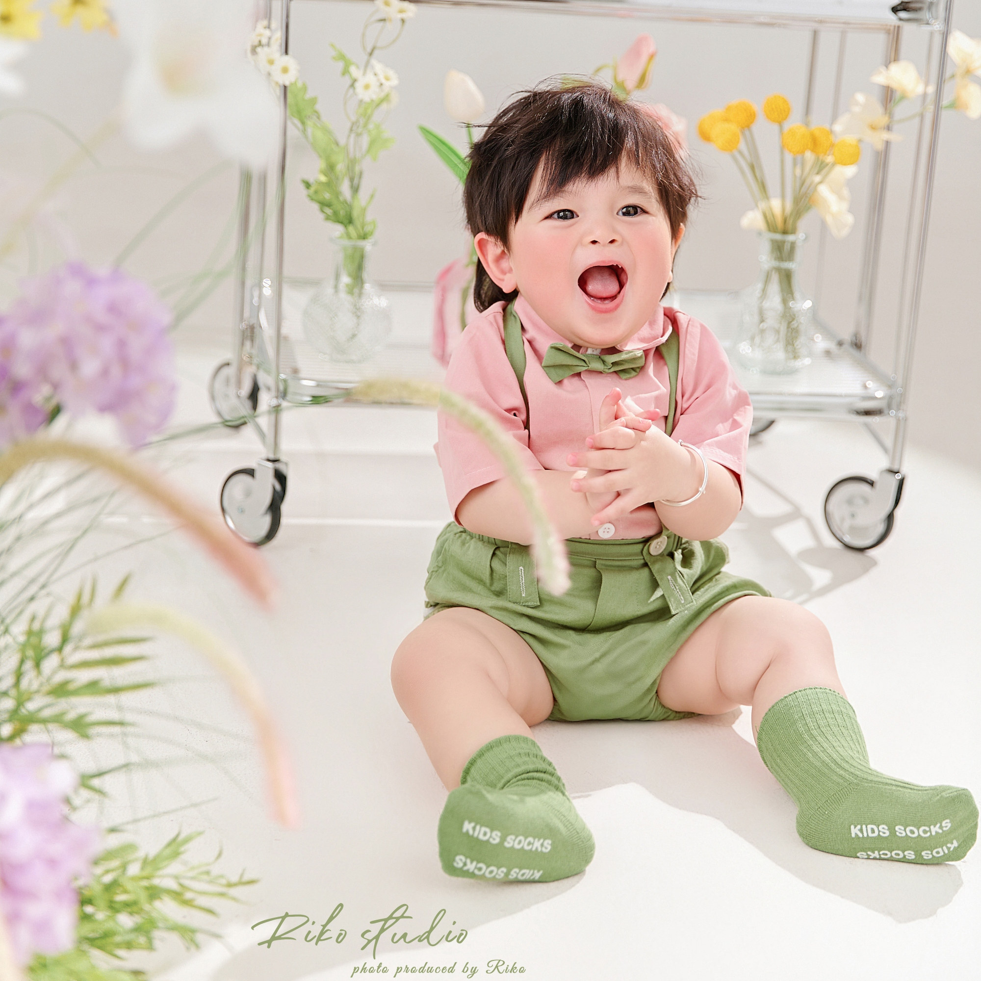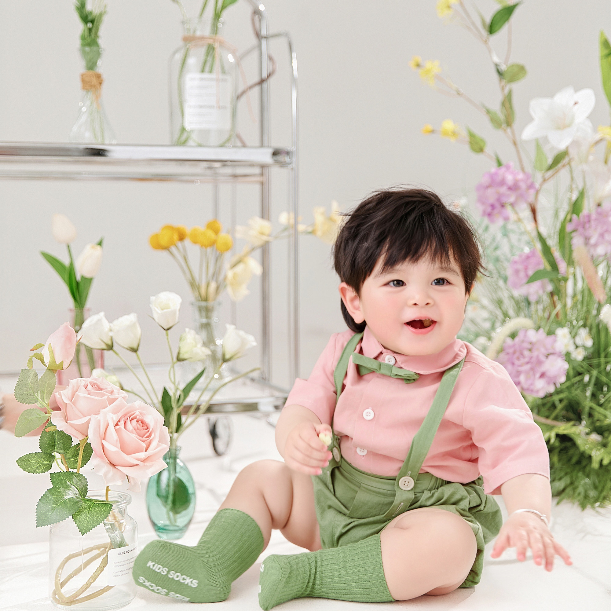 推荐理由:新款儿童摄影服装春日绿色背带裤男孩周岁生日写真艺术照拍照服装
