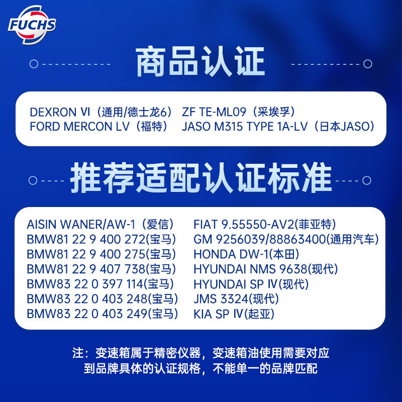 推荐理由:福斯自动变速箱油ATF 6400 1L德士龙6认证低粘度采埃孚ZF福特爱信
