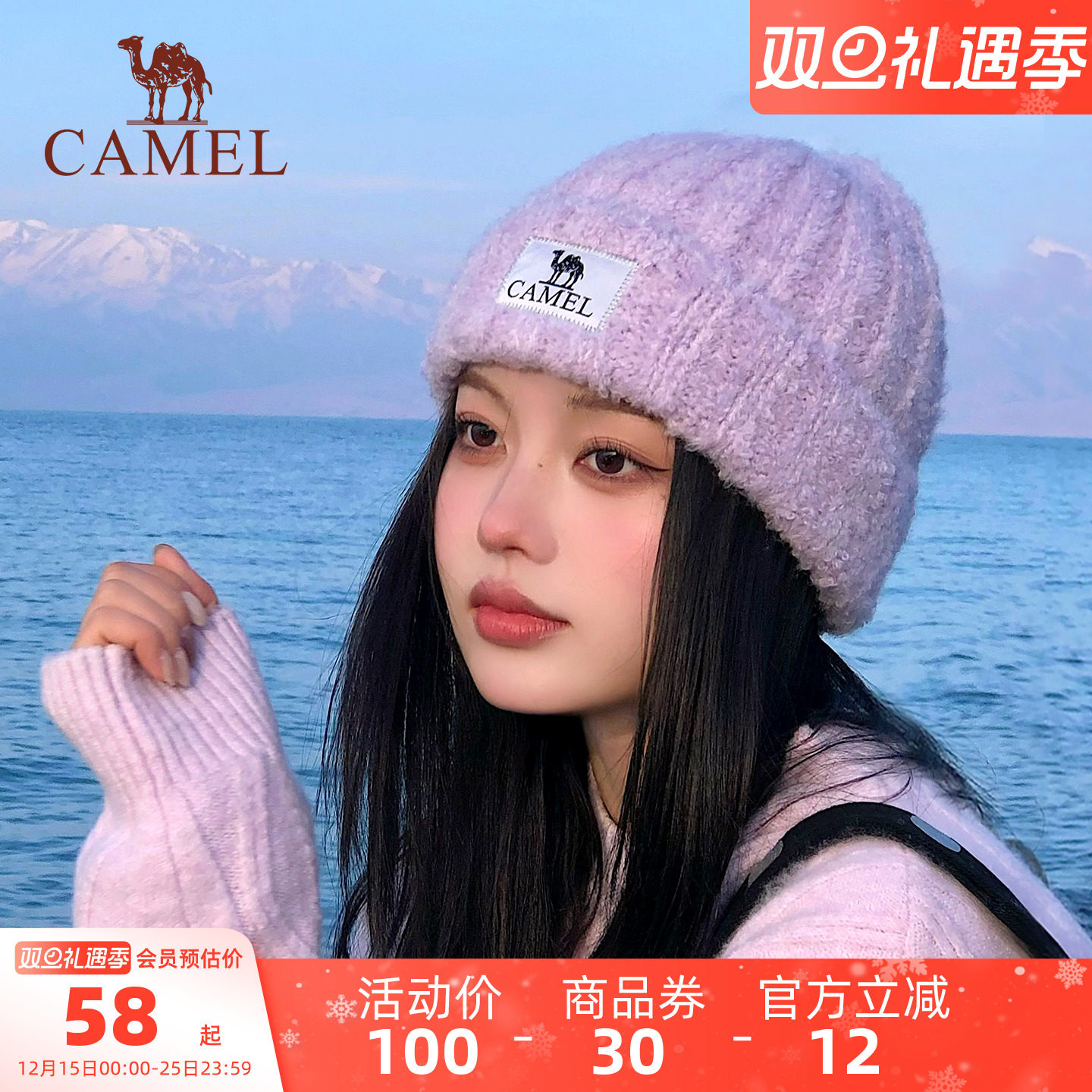 骆驼保暖针织帽女羊毛纱冬季户外防风滑雪护耳包头帽冷帽毛线帽子