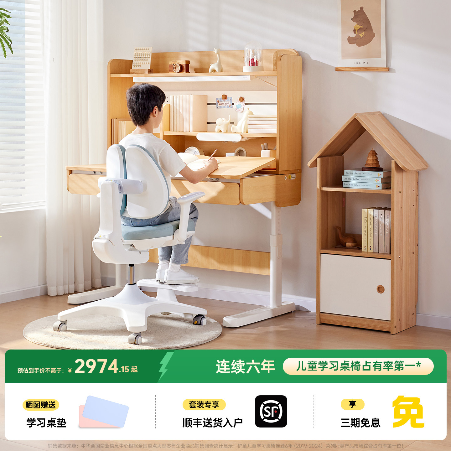 护童儿童学习桌可升降书桌小学生家用写字桌椅套装2025新款课桌椅