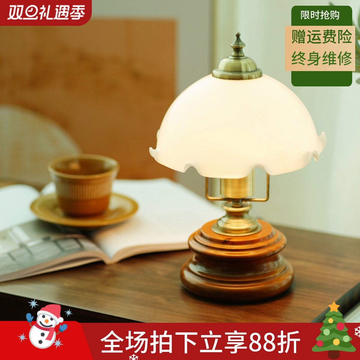 日月星云灯饰迷你复古中古风实木法式美式欧式床头卧室玻璃小台灯