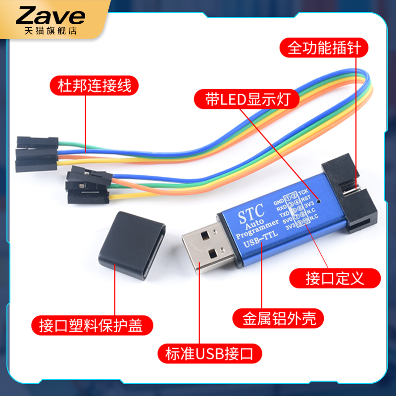 STC单片机51程序自动下载线 USB转TTL免手动冷启编程器STCISP烧录