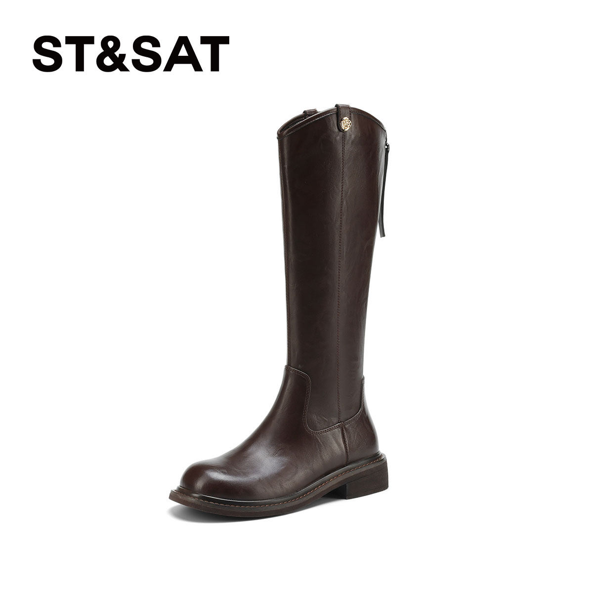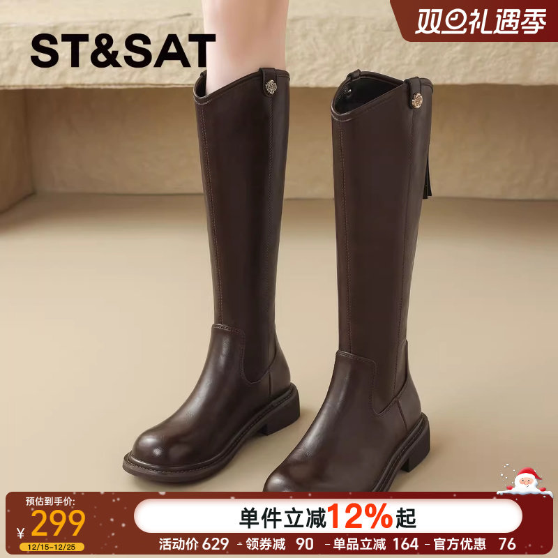 星期六韩版显瘦长筒靴女2025秋季厚底英伦风骑士靴西部牛仔靴长靴