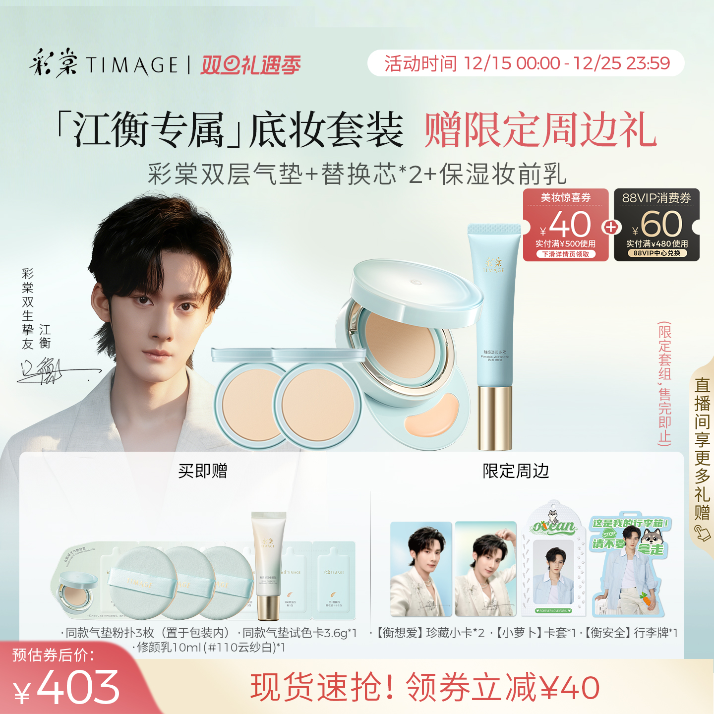 【江衡专属】彩棠TIMAGE双生气垫/持妆气垫遮瑕持久不脱妆24H粉底