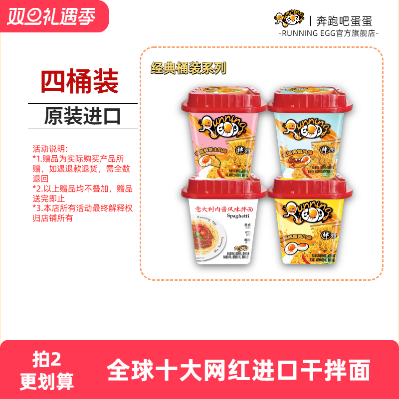 奔跑吧蛋蛋runningegg进口蟹芝士香辣咸蛋黄干拌面4桶方便面夜宵