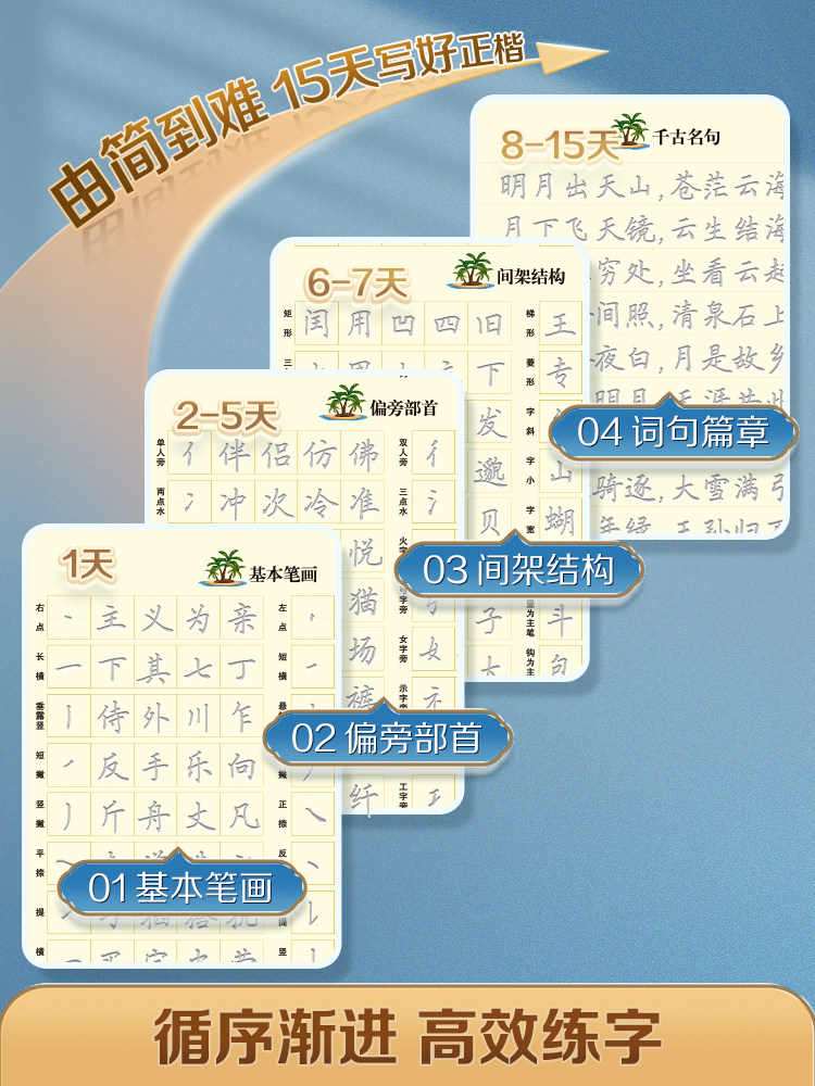 推荐理由:楷书速成凹槽练字板 田英章书可消失重复书写 硬笔书法字帖带视频