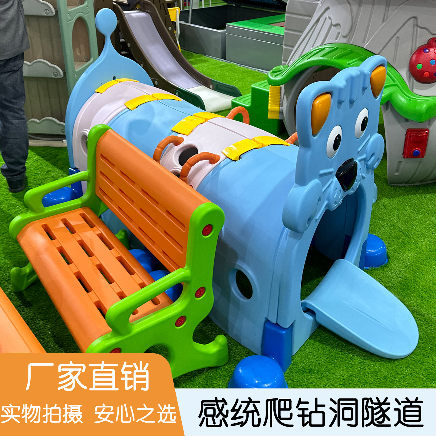 儿童二合一猫咪隧道滑梯爬行感统训练器材幼儿园室内游戏道具钻洞