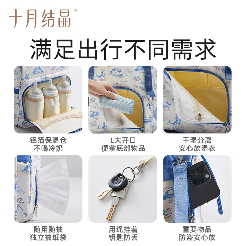 高颜值,高品质妈咪包,多款式选择,超大容纳,多个细节区域,宝宝生活从容打理。魔法面料,防水防污,轻松应付所有场景