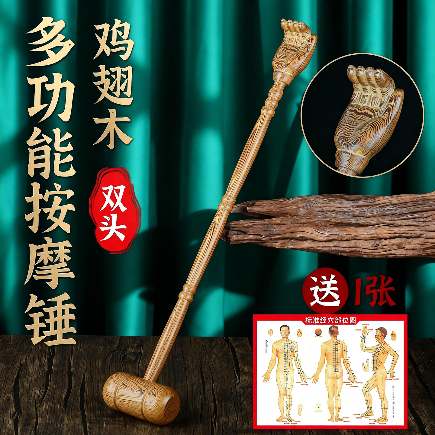 鸡翅木质按摩捶敲打锤经络健身锤背器穴位拍打棒两用痒痒挠手持式