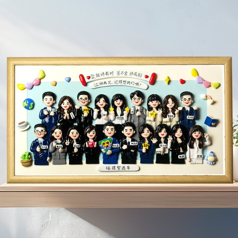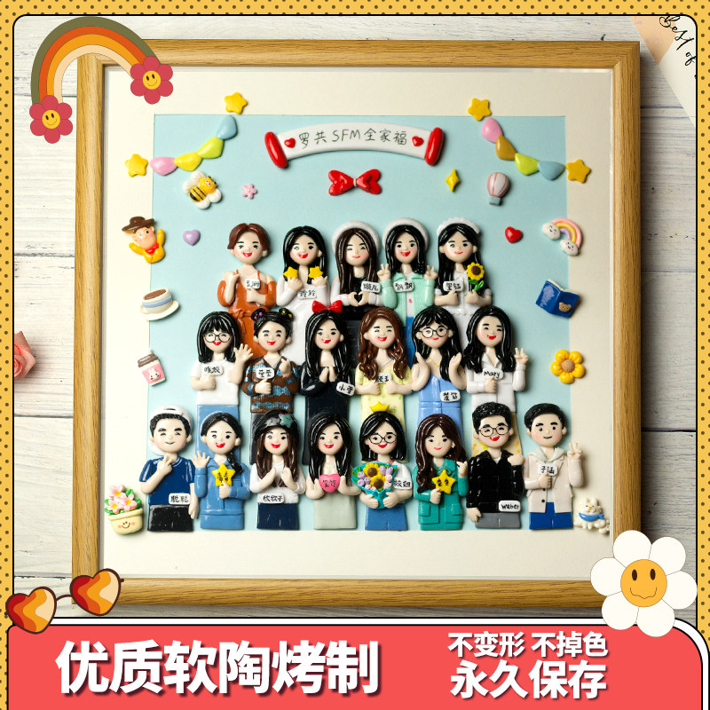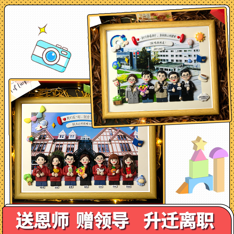 推荐理由:软陶集体人偶手工diy相框定制粘土多人团队礼品离职纪念毕业礼物