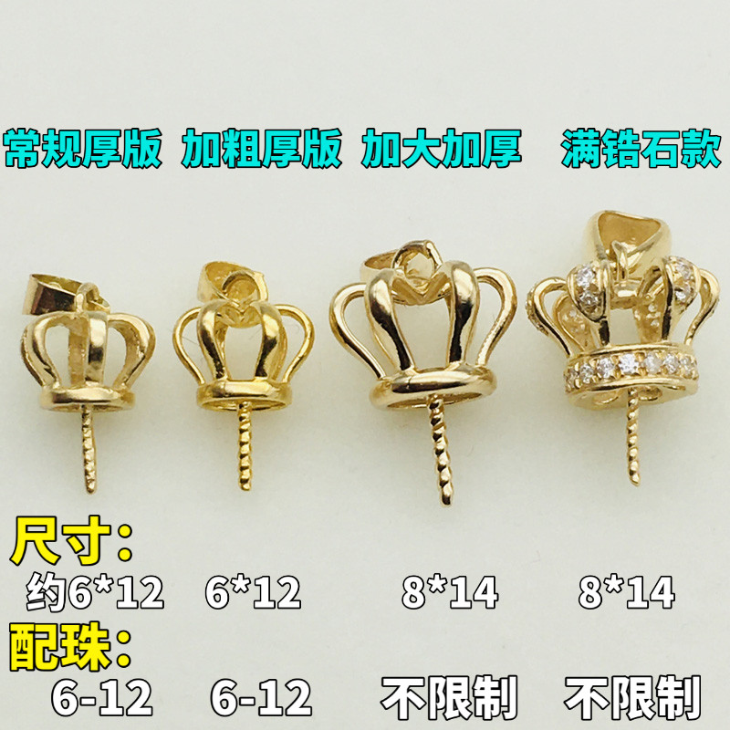 18K金皇冠吊坠珍珠蜜蜡空托au750项链坠挂坠蜜蜡大珠加厚镶嵌托