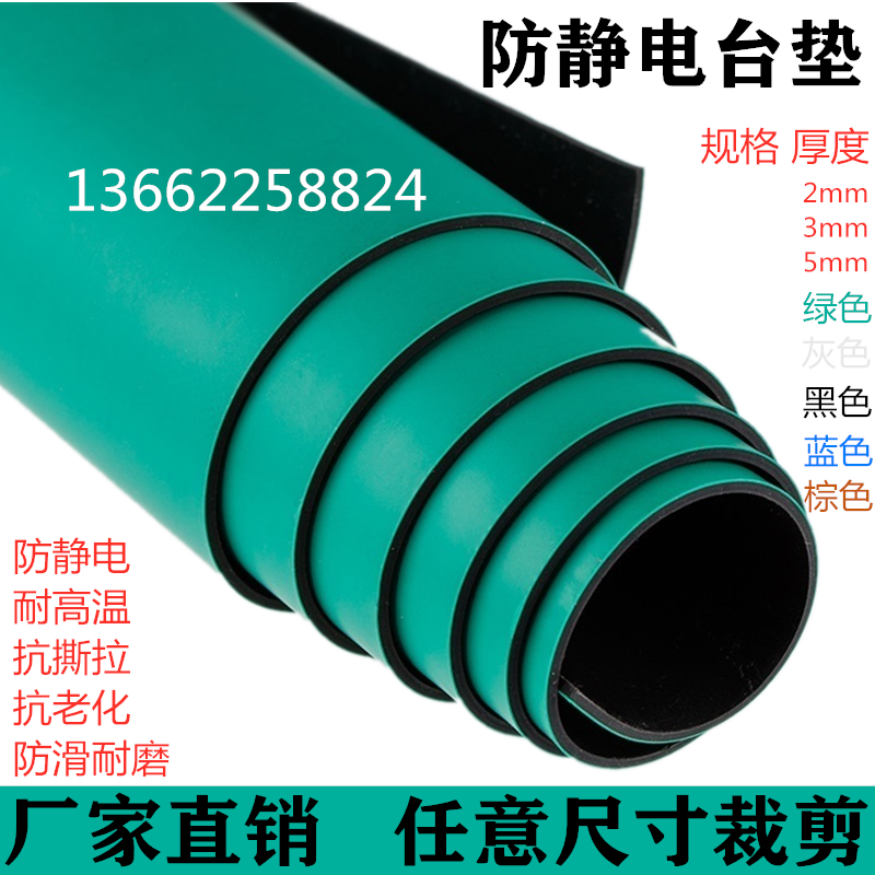 推荐理由:防静电胶皮绿色台垫环保橡胶垫2mm3mm实验室哑光工作台胶皮维修桌