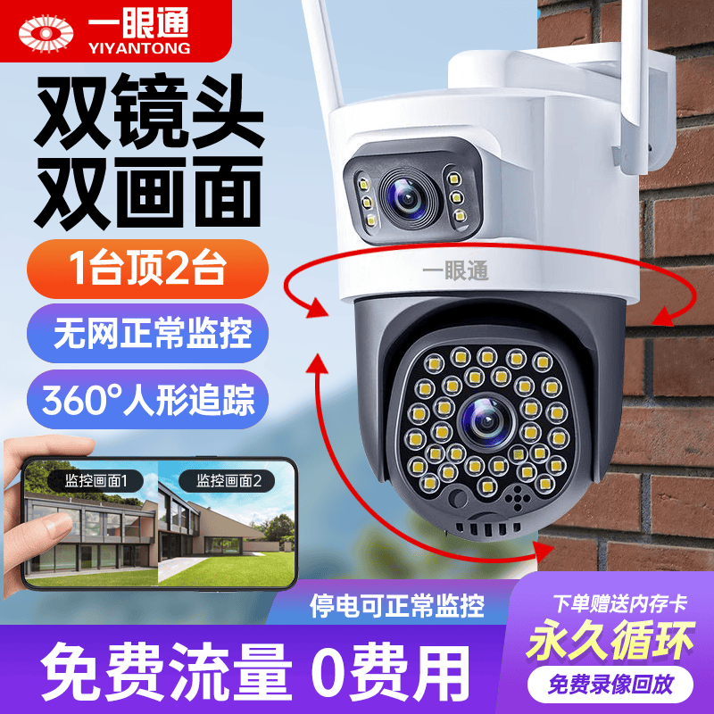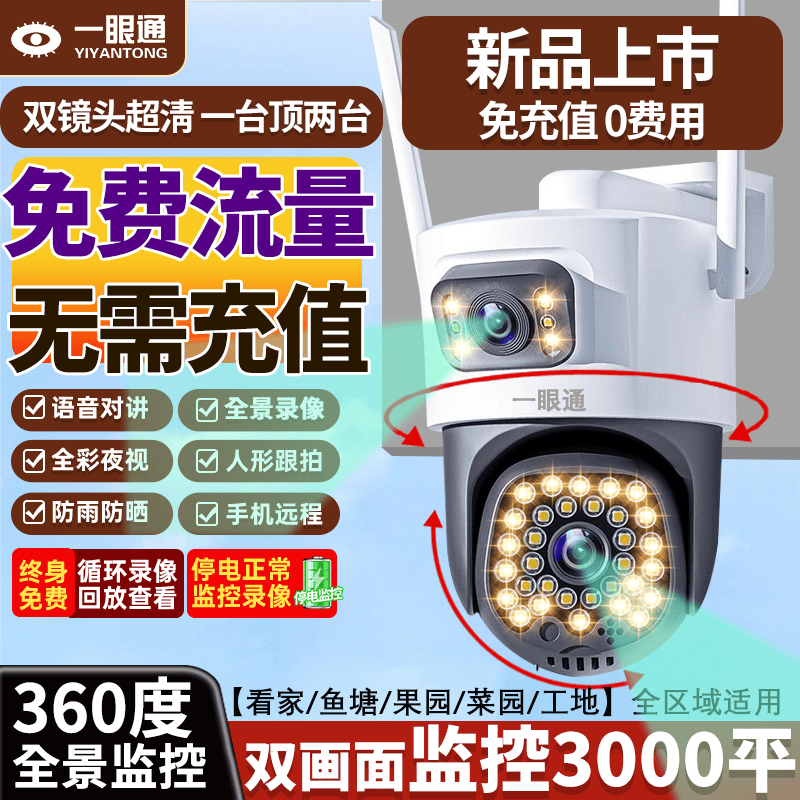 推荐理由:一眼通免费流量监控摄像头超清4G室外手机远程wifi免充值监控