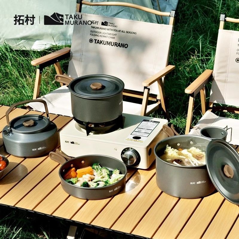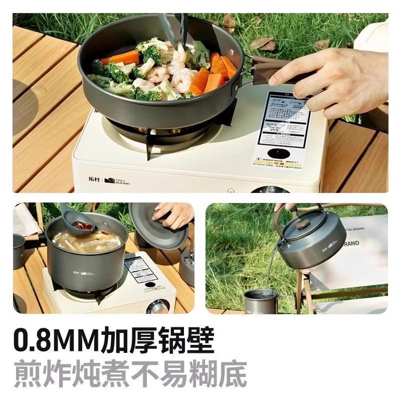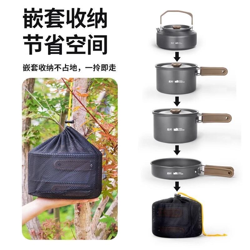 新款直销亚马逊热卖户外野营套锅茶壶菜板套装2-人便携式铝合金