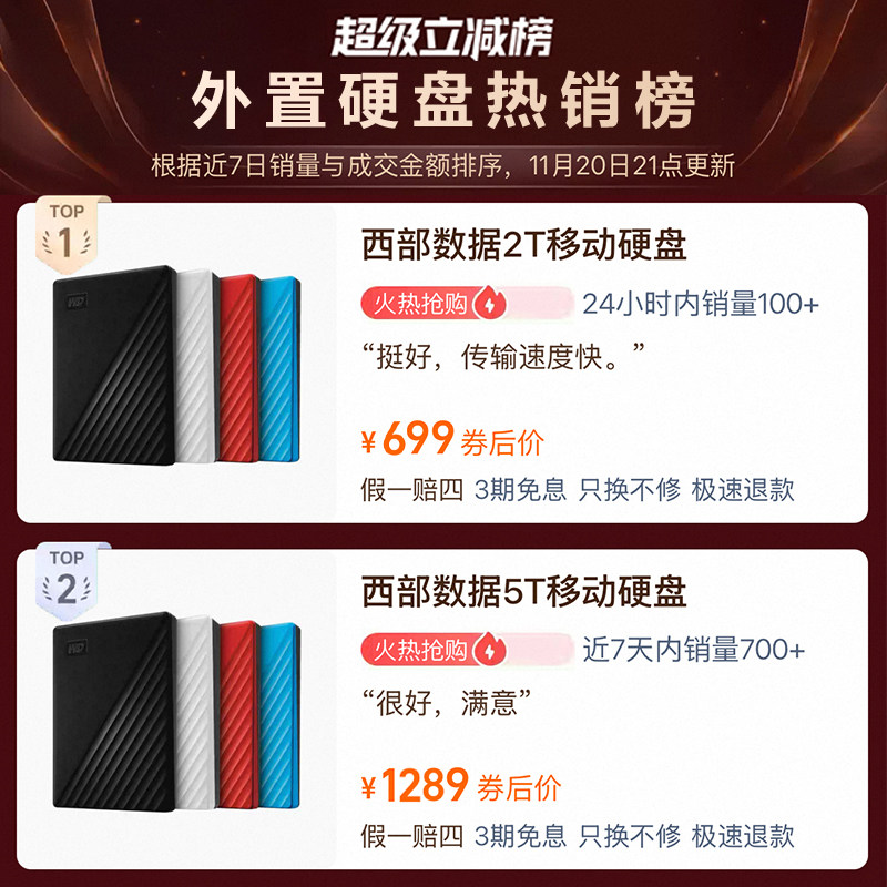推荐理由:WD西部数据移动硬盘6t正品 加密电脑大容量外置手机机械高速存储
