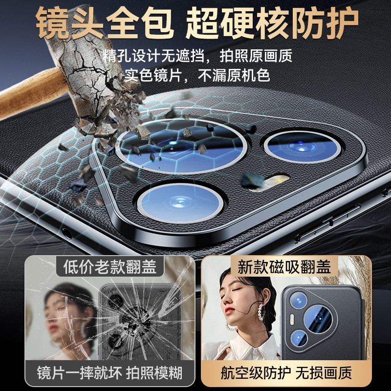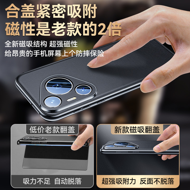 [顺丰现货]适用华为Pura70Pro手机壳新款pura70真皮磁吸翻盖p70Pro+智能视窗p70ultra镜头全包防摔男女保护套