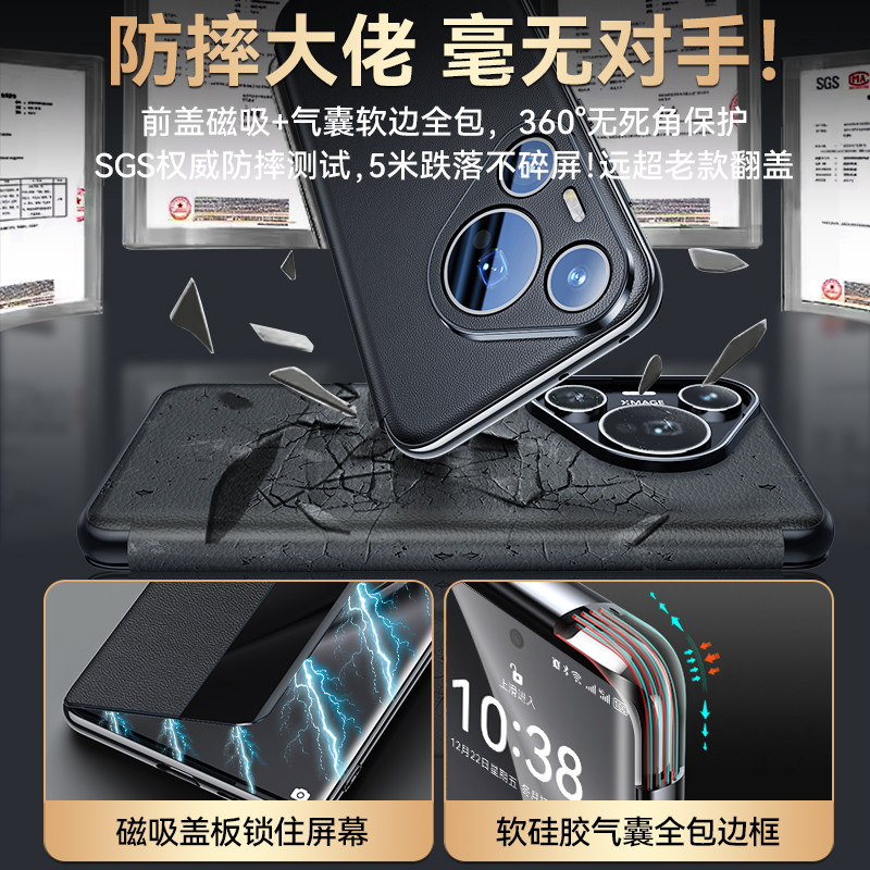 推荐理由:头层牛皮 磁吸翻盖 智能视窗 全包防摔