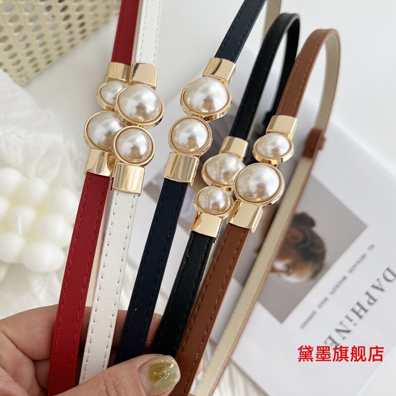 黑色腰带女细松紧弹力小皮带装饰连衣裙衬衫仿珍珠对扣皮带潮腰封