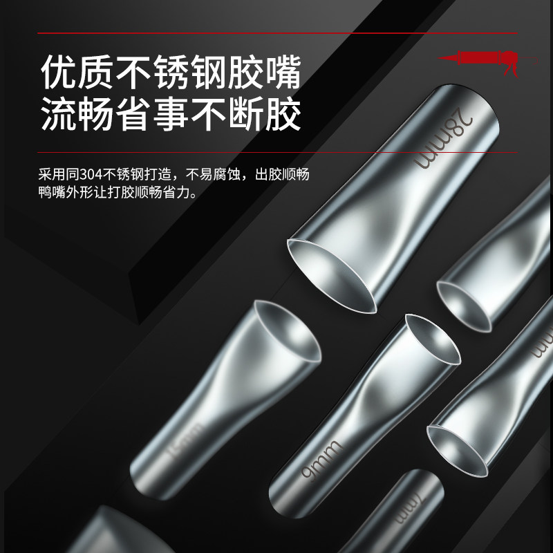 推荐理由:不锈钢胶嘴玻璃胶枪嘴鸭嘴型打胶神器门窗专用结构胶枪嘴打胶抢嘴