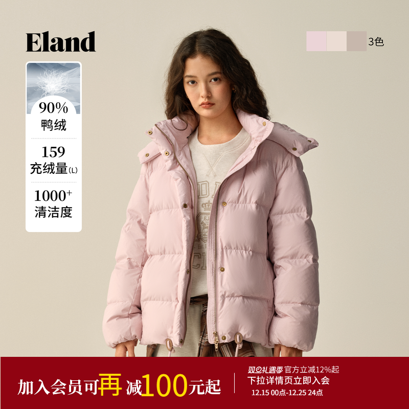 推荐理由:【羽绒】Eland衣恋泡芙鸭绒服女连帽龟背保暖短款外套2025冬新款