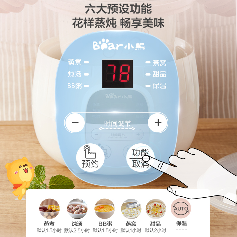 小熊电炖锅陶瓷婴儿炖锅家用小bb煲粥电饭锅隔水炖盅炖燕窝煲汤锅