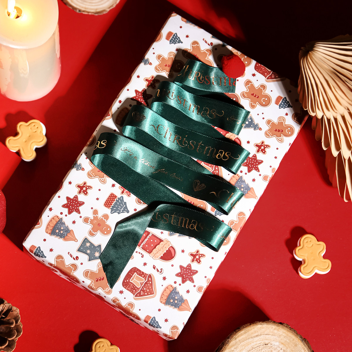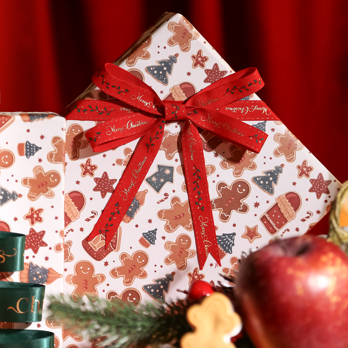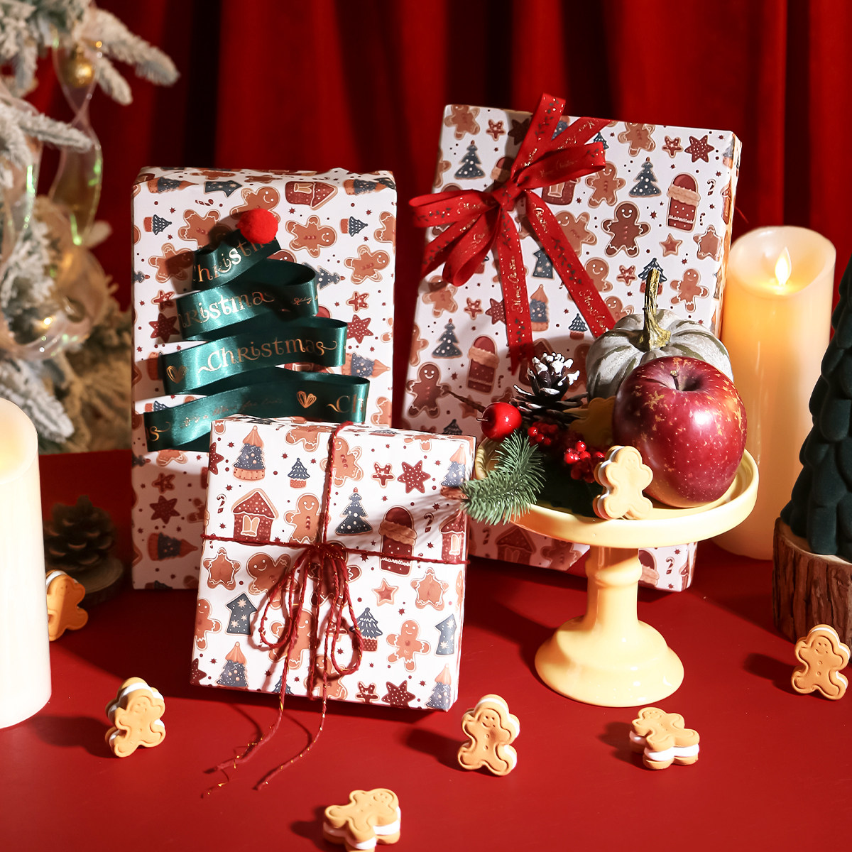 ISUKA一树家|欢乐姜饼村圣诞节礼物包装纸加丝带可爱卡通生日仪式感伴手礼盒礼品包装高级感儿童包书皮彩纸