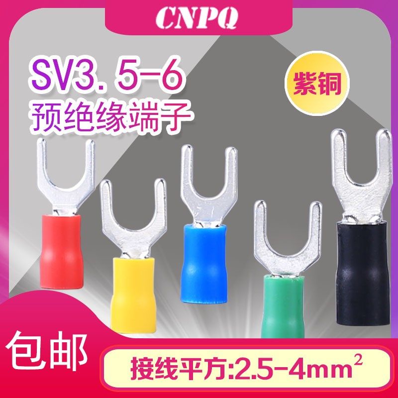 冷压接线端子SV3.5-6欧式叉型UT铜鼻子预绝缘端子 1.0厚 紫铜国标