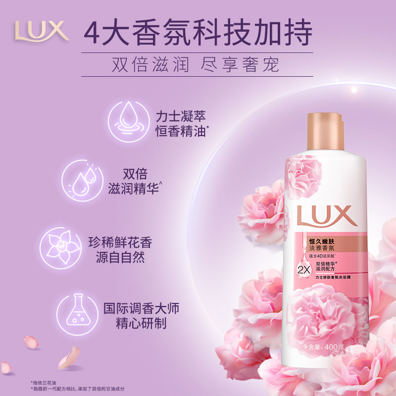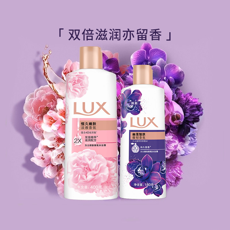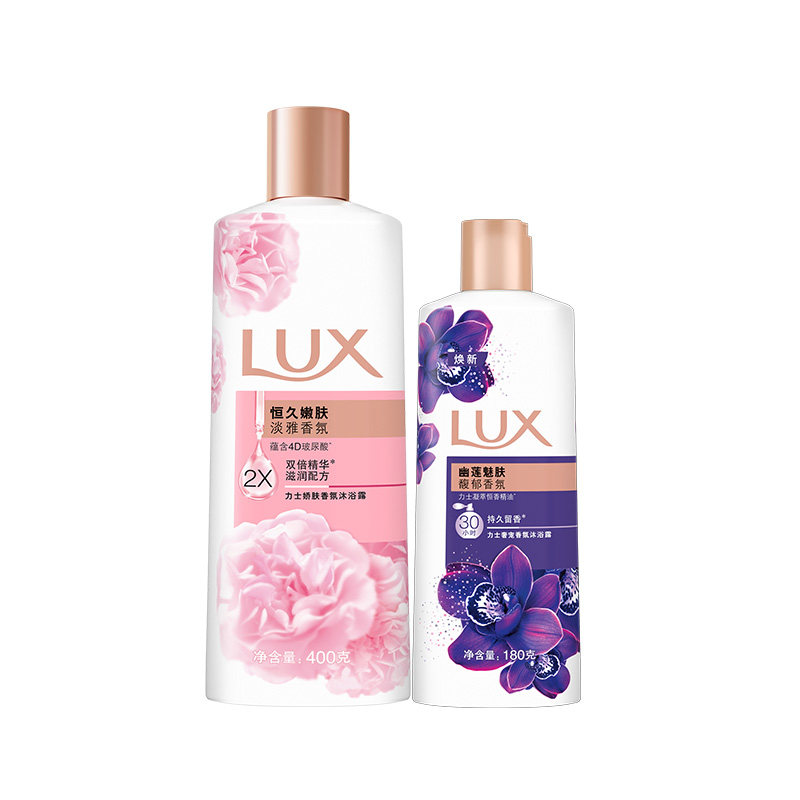 推荐理由:力士沐浴乳促销装(恒久嫩肤+幽莲魅肤)沐浴露400G+180G