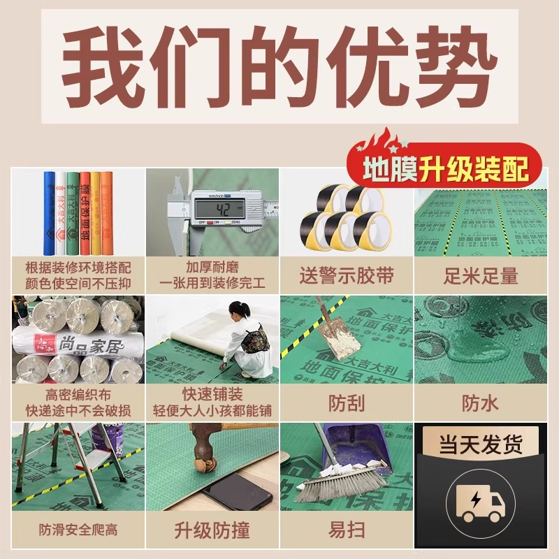 推荐理由:装修地面保护膜地砖瓷砖木地板防护垫耐磨加厚家装一次性防潮地膜