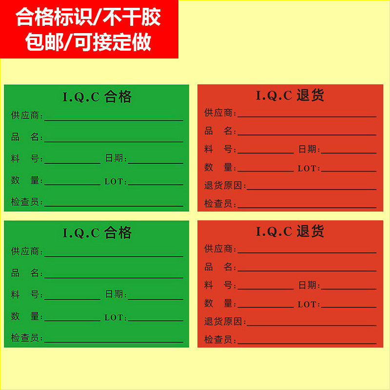 IQC合格标签贴纸不干胶仓库物料标识卡产品不合格品退货标签定制