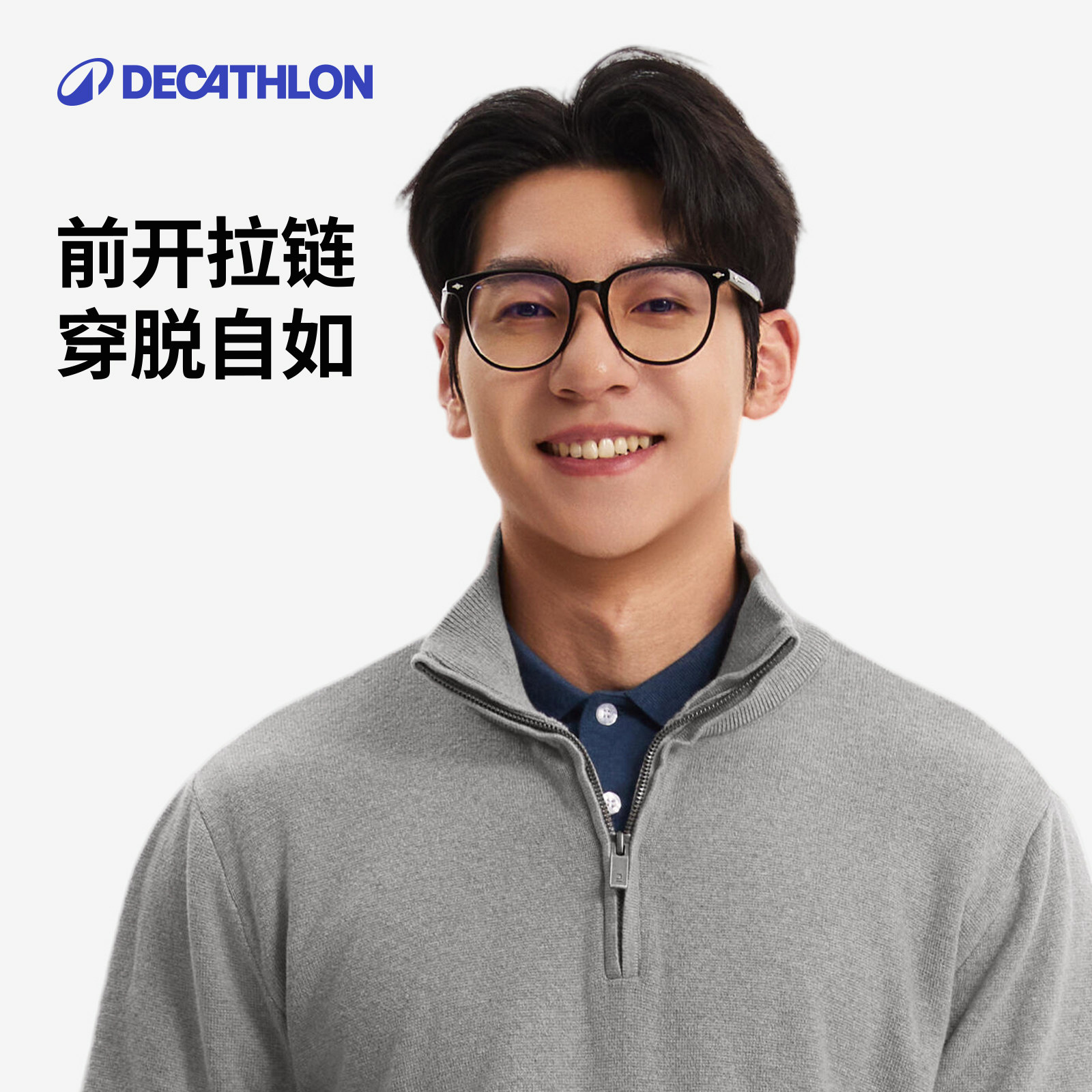 迪卡侬半拉链毛衣秋冬保立翻领套头衫运动休闲长袖针织衫男SAG1