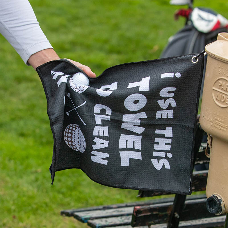 黑色趣味印字高尔夫球毛巾球具清洁巾Golf球杆巾运动巾挂件擦球巾