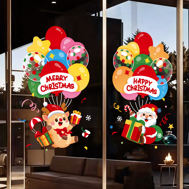 推荐理由:圣诞节玻璃门贴纸2026氛围场景布置圣诞老人树窗贴静电窗花装饰品