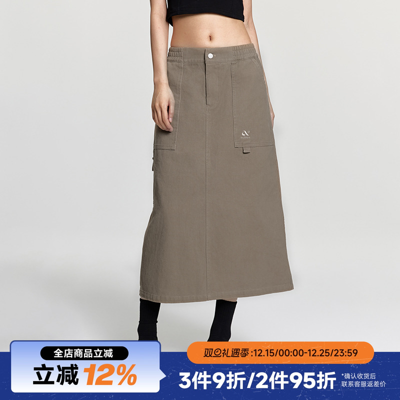 RAPPEYE 美式复古国潮设计感百搭高腰显瘦后开叉中长款酵洗工装裙