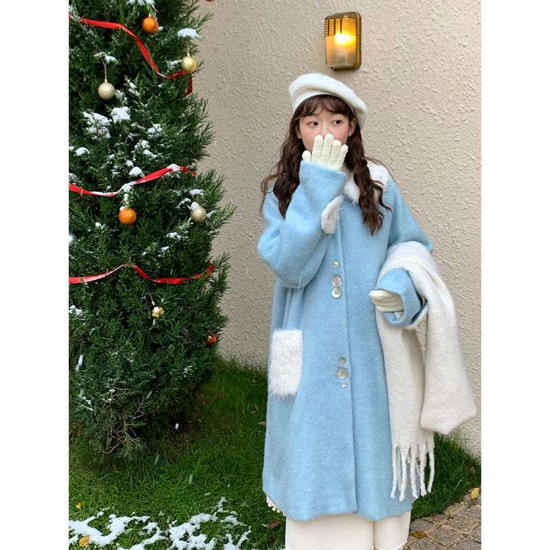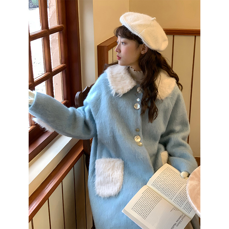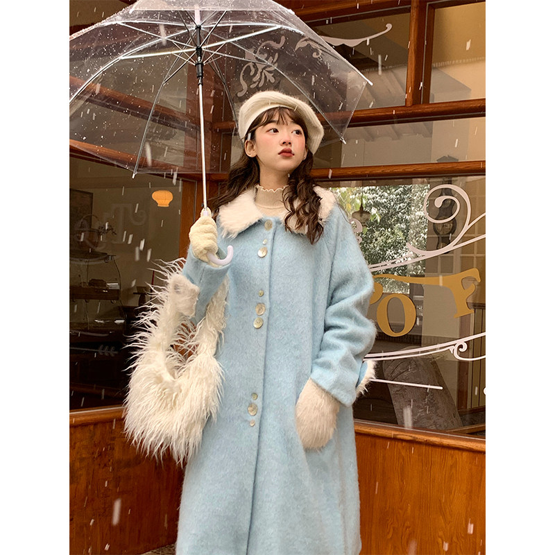 蛋包饭餐厅【First love】毛绒软糯呢子大衣女冬季过膝中长款外套