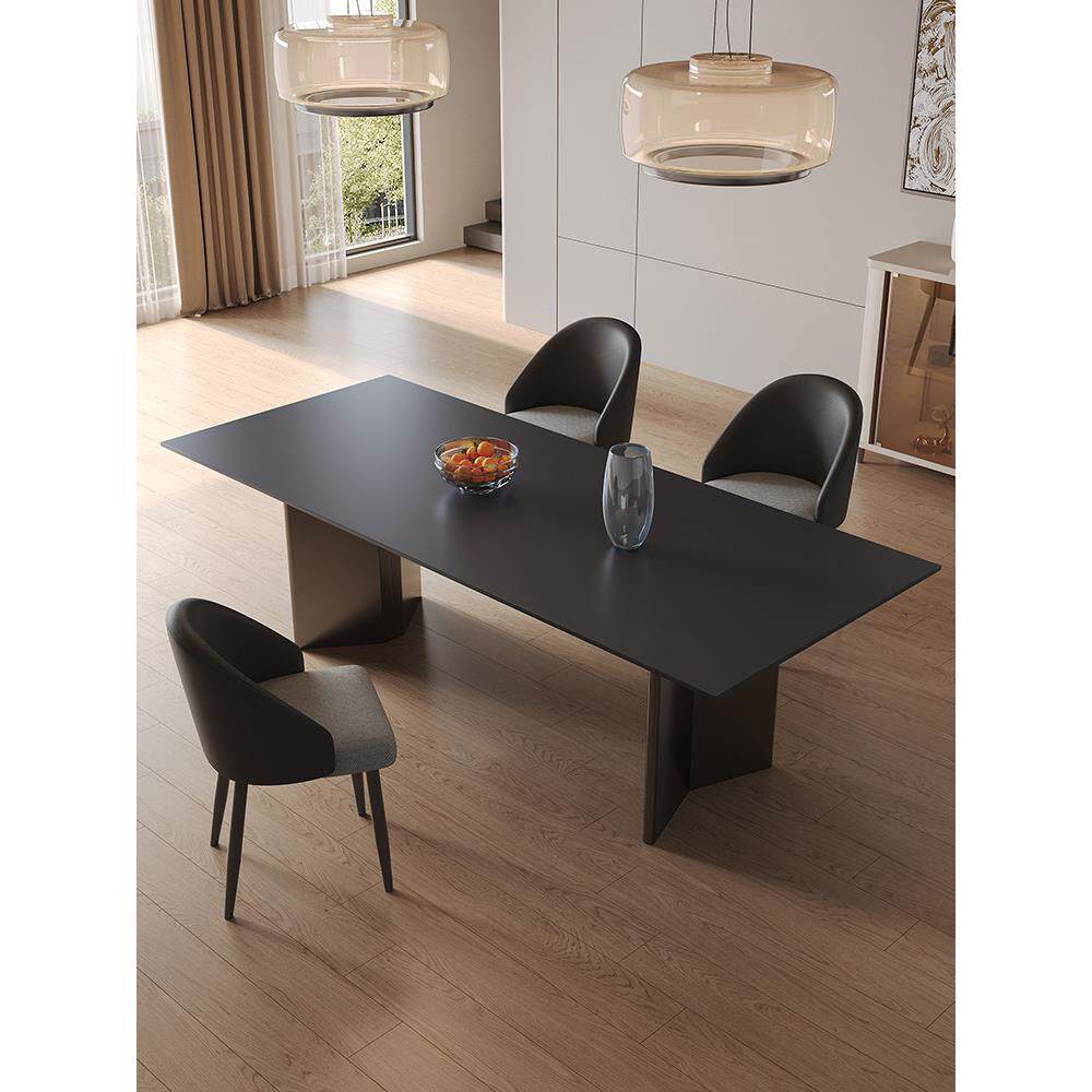 德利丰岩板餐桌简约现代黑色岛台餐桌椅组合意式极简家用长方形桌