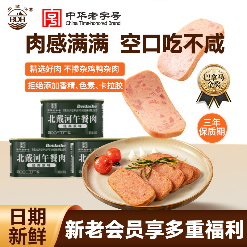 北戴河官方旗舰店即食午餐肉罐头200g火锅泡面三明治专用应急储备