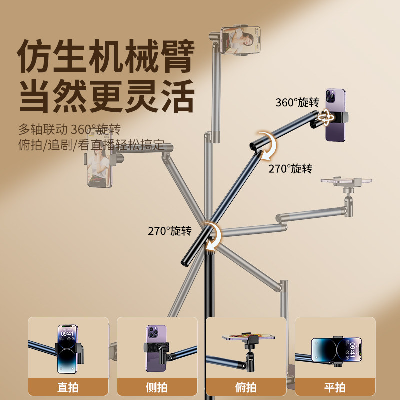 2025新款直播专用手机支架落地俯拍平板拍摄360度旋转拍视频vlog架子懒人ipad支撑架pro万向桌面抖音25机械臂