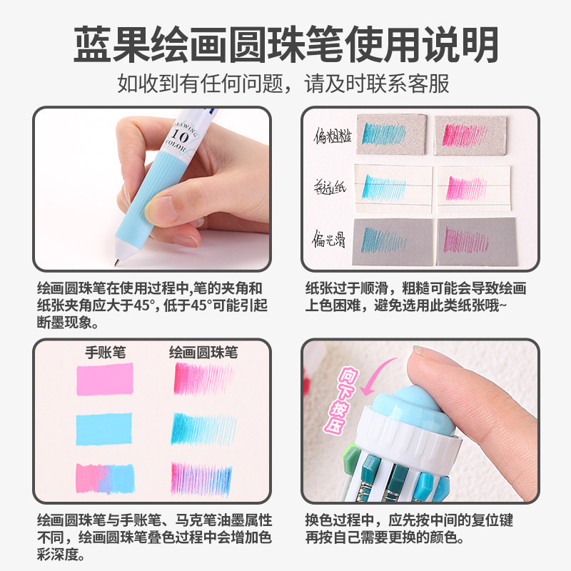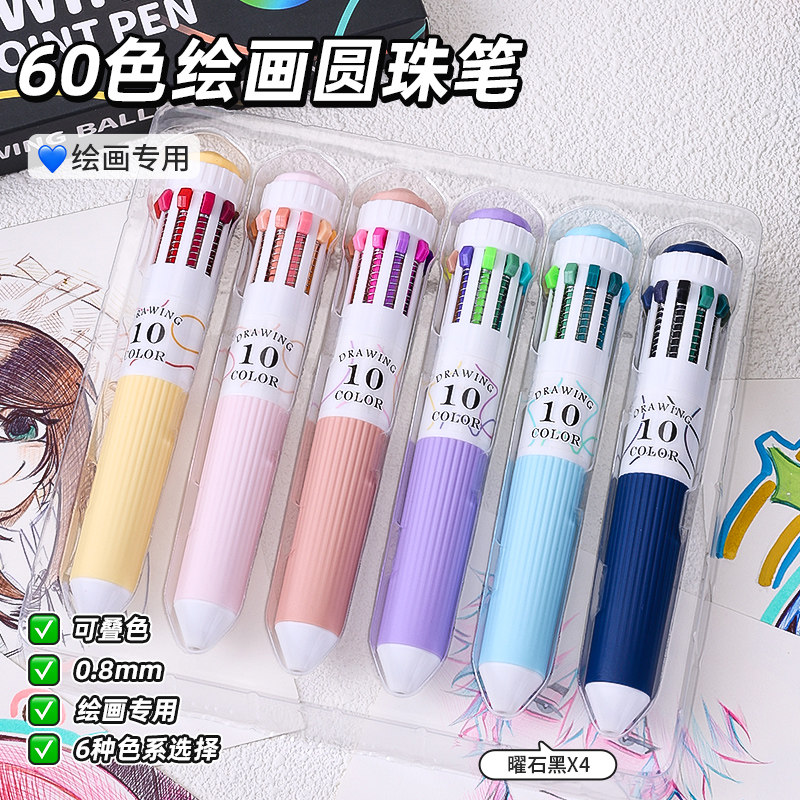 推荐理由:蓝果全套60色绘画专用多色圆珠笔软握按压彩色多功能十色合一书写手账0.8mm可叠色高颜值标记学生摸鱼中性笔