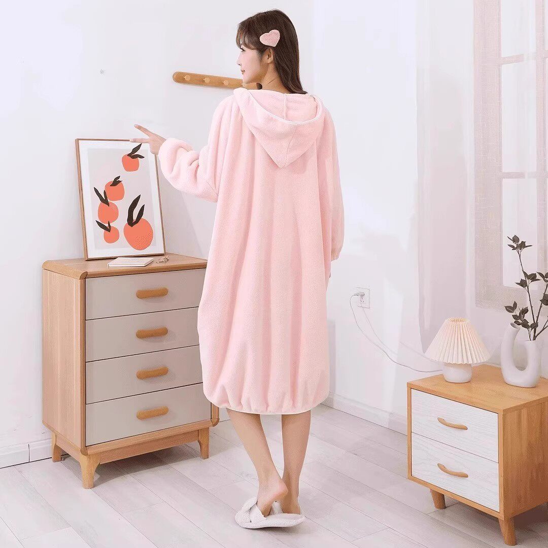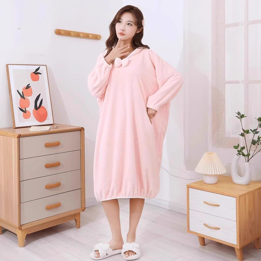 秋冬浴袍可穿浴巾女家用珊瑚绒吸水柔软速干浴裙洗澡睡袍睡衣连帽