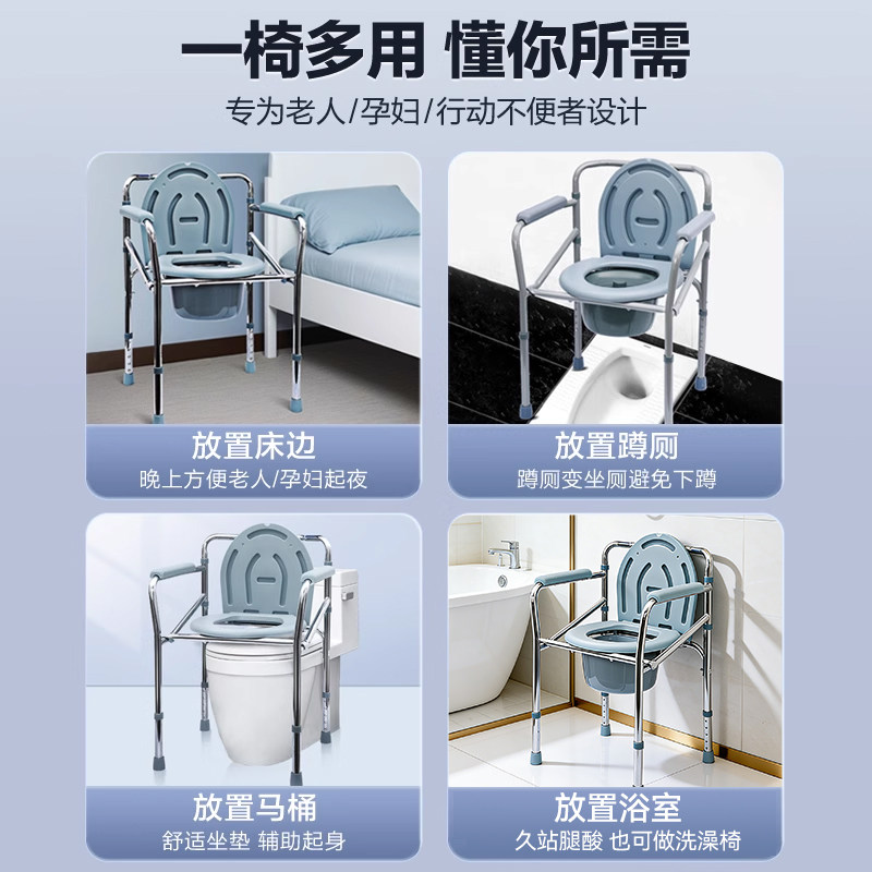 可孚老人坐便椅坐便器残疾家用结实移动马桶增高厕所凳子可折叠