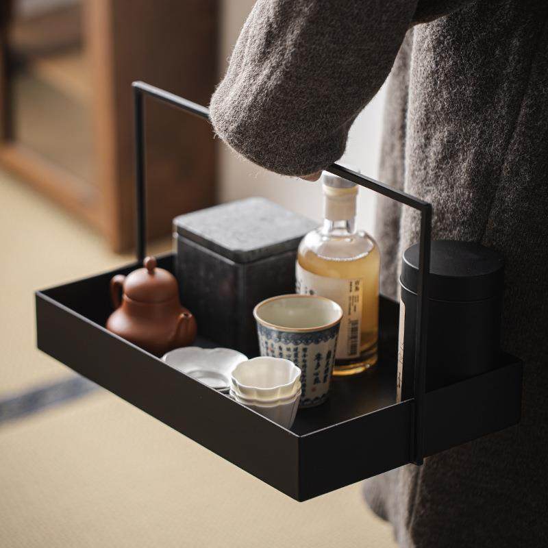 新中式铁艺方澜提篮黑色茶具收纳盒茶棚茶托盘茶空间民宿装饰摆件
