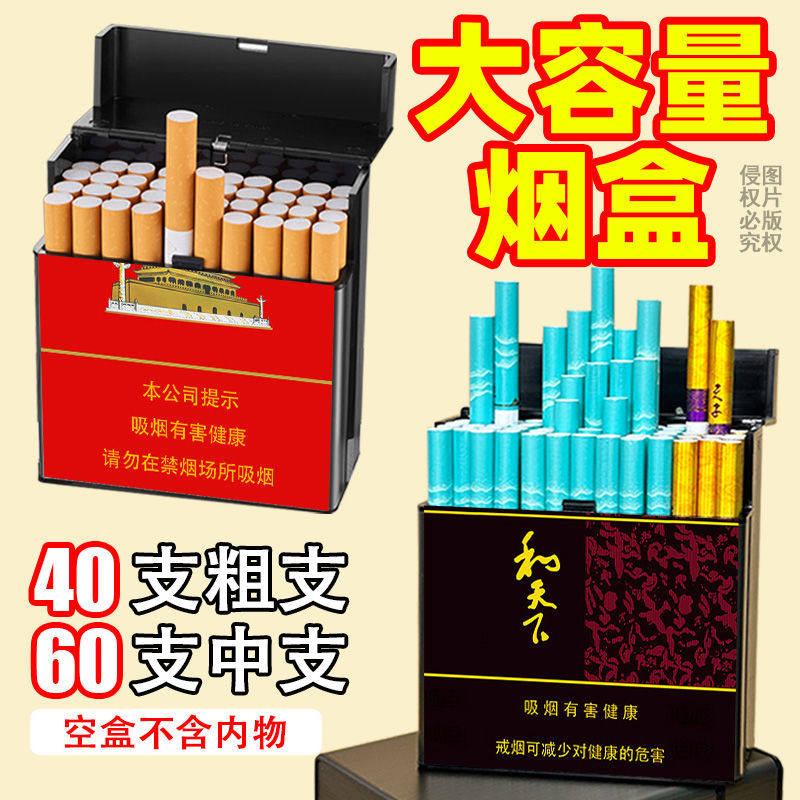 超大容量分格粗中支装40支通用烟盒便携防压防潮烟盒自动翻盖烟盒