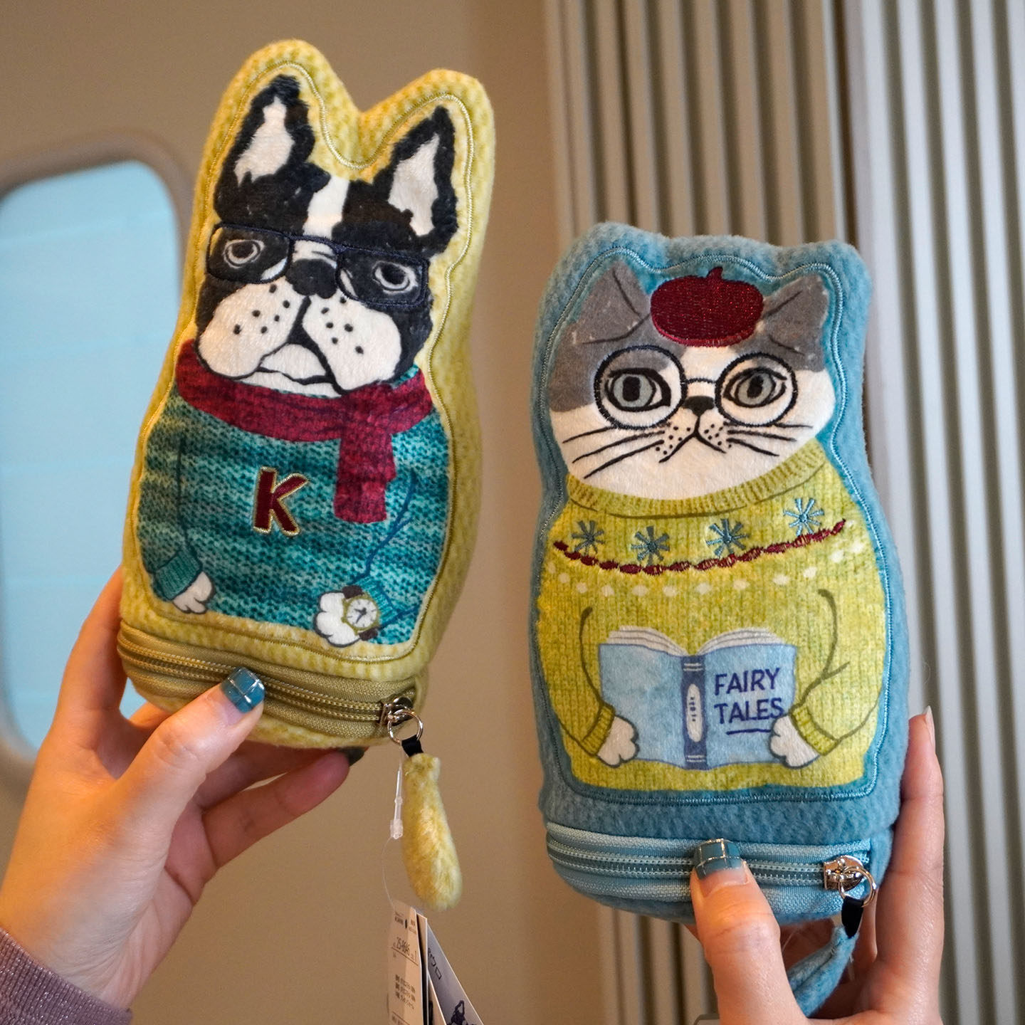 日本Kusuguru刺绣猫咪化妆包拉链收纳包可爱杂物包异形包立体笔袋