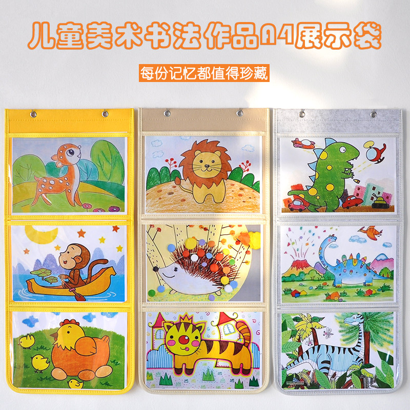 推荐理由:绘画作品展示袋A4A5美术作业图书绘本收纳袋幼儿园教室透明挂袋