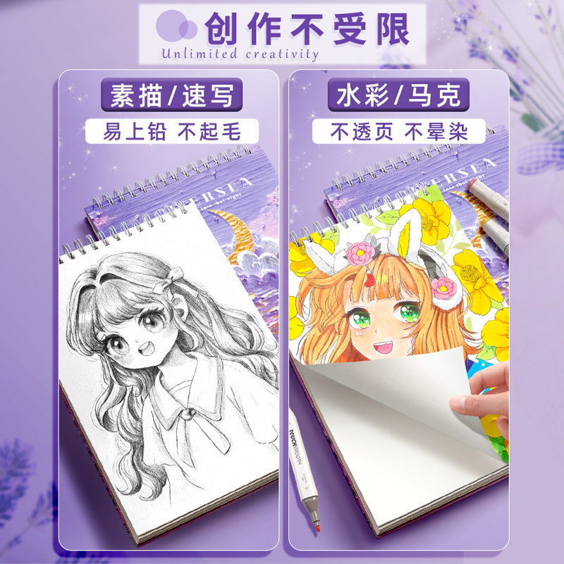 素描本a4绘画本8k速写本16k美术生专用小学生幼儿园画画描绘本空白美术本图画水彩彩铅马克笔加厚儿童素描纸